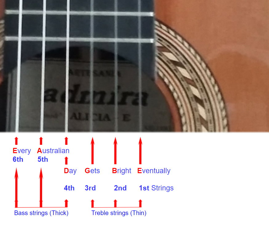 Memorize the 6 strings on the guitar