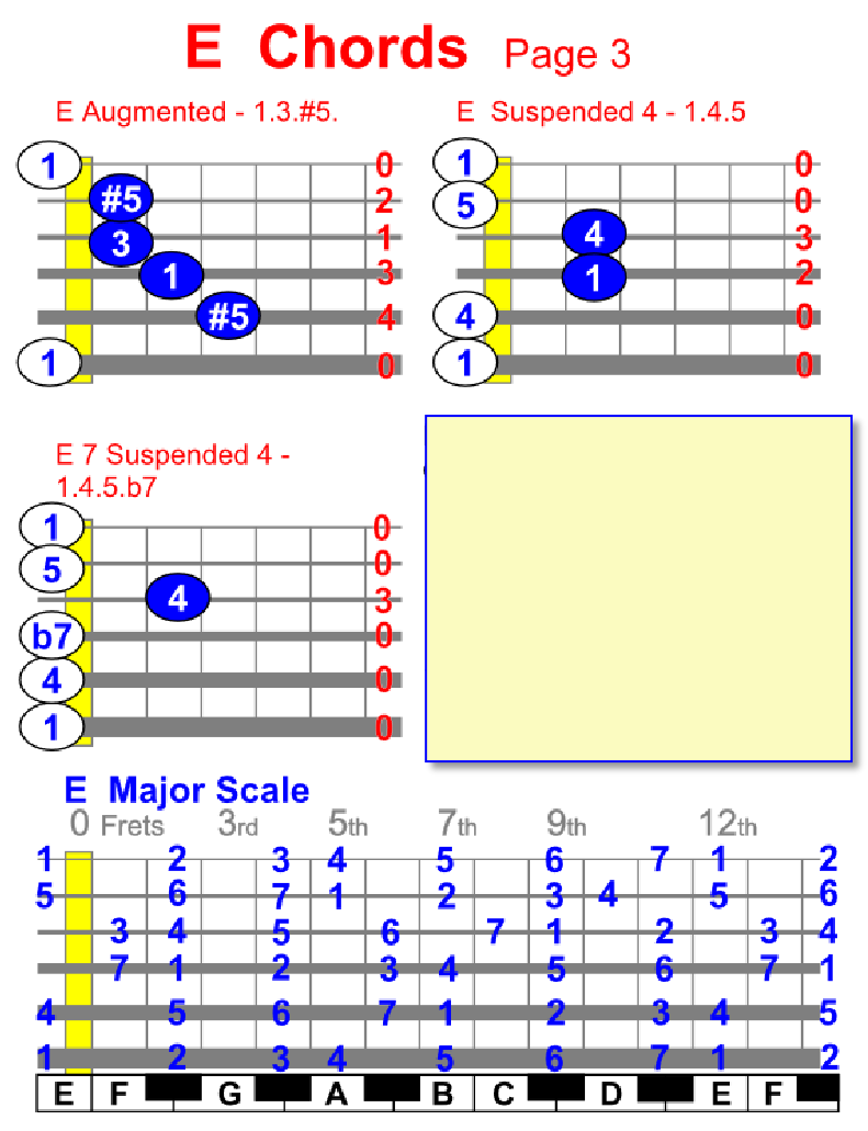 By viewing the Major Scale Diagram shown below you can find chords and scales in different positions, plus you can find chords and scales on piano/keyboard too.